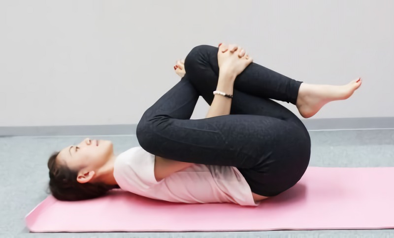 - そのまま左足を抱え込んで背中が丸くなるような体勢になります。