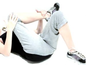 片膝を胸に引き付ける。片膝を両手でかかえ、胸に引き付けていきます。