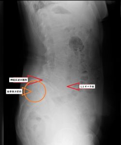 その理由は、すべり症を起こし、腰の骨がずれることによって神経の通り道が狭くなり、腰部脊柱管狭窄症となるからです。