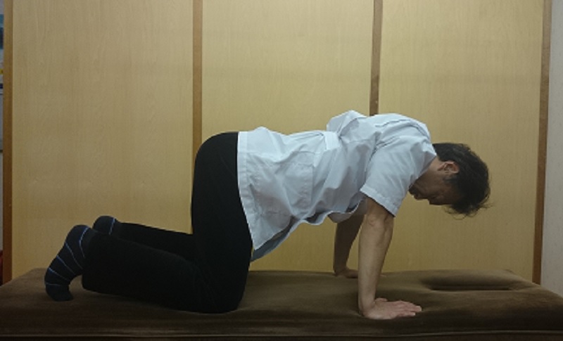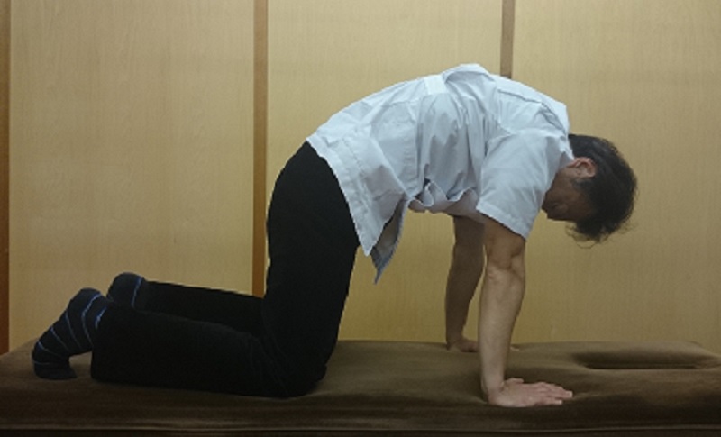 ②四つん這いになり、両手、両足は肩幅くらいに開きます