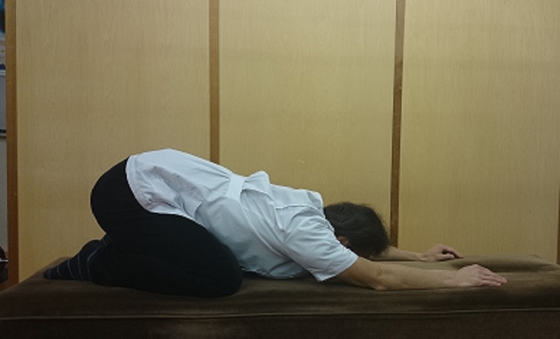 背中の抵抗感が感じられるところで姿勢を5秒程度保持してからゆっくりと元の姿勢に戻します。
