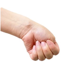 肘を真っすぐに伸ばした状態、親指を4指で包み込みます。